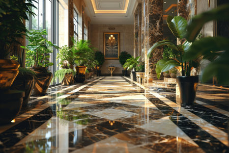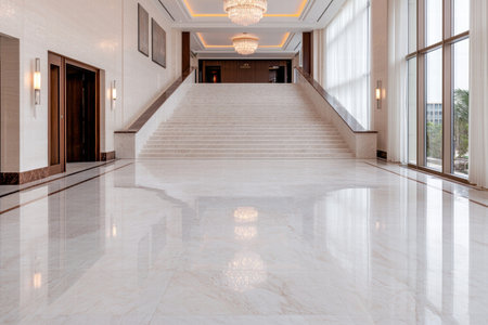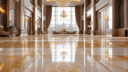 A Luxury Lobby's Marble Floor, Gleaming with Reflections, Exemplifies Elegance in Every Tile