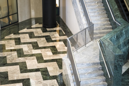 A detailed shot of the beautiful marble flooring in the entrance of the convention center giving a luxurious feel to the space