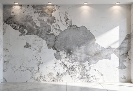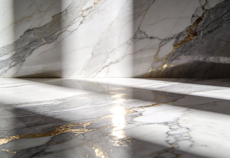 Beautiful marble slab with white and gray patterns, accented by gold veins. It highlights the natural elegance and intricate details of marble stone, AI generated image