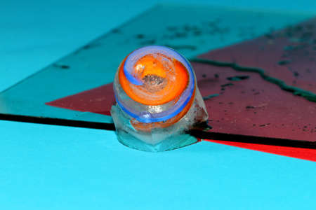 Multi Colored gem on a reflective surface. Beautiful glasswork