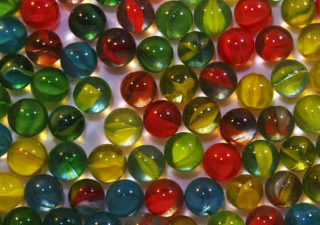 Detail of glass classic marbles outdoor on pathway in hole in ground
