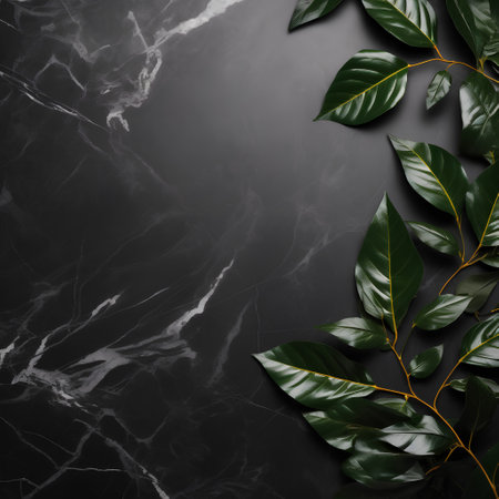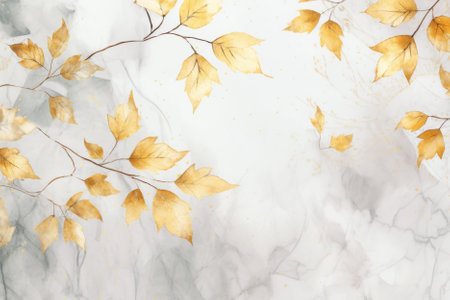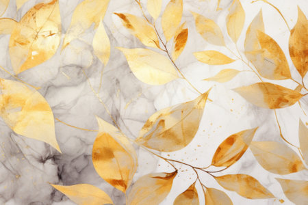 This captivating image features elegant golden leaves set against a dark marble background, perfect for enhancing sophisticated decor and design projects.