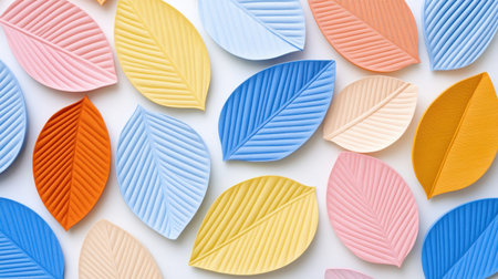 A vibrant array of colorful decorative leaves in various shapes and textures, perfect for enhancing artistic projects, backgrounds, or creative designs.