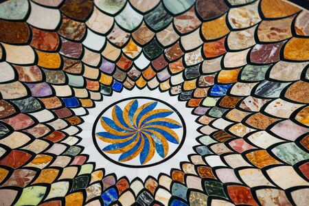 Beautiful mosaic tile geometric pattern showcasing intricate decorative design in vibrant colors