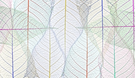 Autumn leaves pattern background. Skeleton leaves on a blue texture. Fall banner