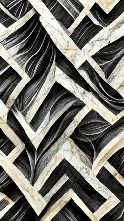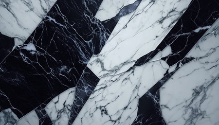 Black and white marble slabs forming an elegant geometric pattern, ideal for upscale interiors. Ai generated image