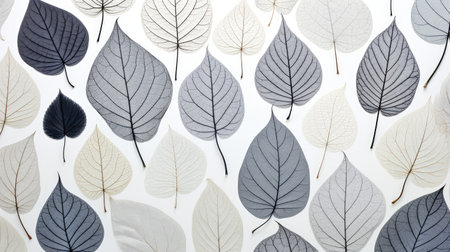 Delicate pastel leaves arranged in a row on a soft blue background, showcasing natural beauty and intricate textures of nature.