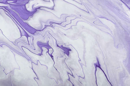 Abstract fluid art background violet and white colors. Liquid marble. Acrylic painting on canvas with purple gradient and splash. Watercolor backdrop with lavender wavy pattern. Stone section.