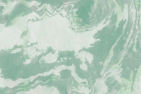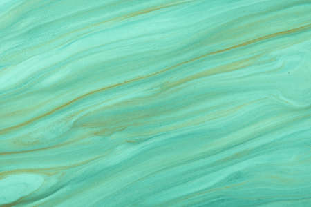 Abstract fluid art background light green and cyan colors. Liquid marble. Acrylic painting on canvas with turquoise pearl gradient and splash. Watercolor backdrop with wavy pattern. Stone section.