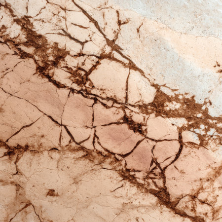 Truffle marble surface with creamy beige tones, natural veining and cracked mineral pattern captured in macro format for design projects.