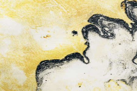 Fabric texture black with yellow natural silk marble print, tie-dye technique.