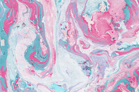 Abstract hand painted texture with marble swirls. Creative background for scrapbook, stationery, web, paper packaging, art poster or banner. Liquid paints colorful chaotic wavy surface. Modern style.