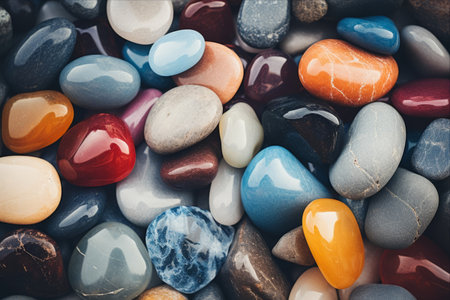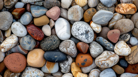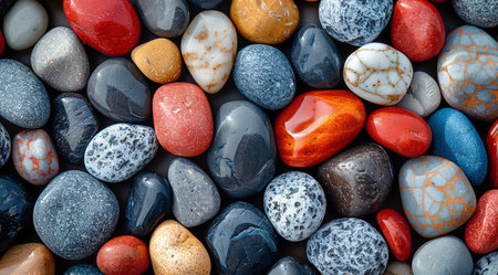 A stunning collection of smooth, rounded pebbles in various colors, showcasing natural beauty and texture. Ideal for artistic and decorative applications.