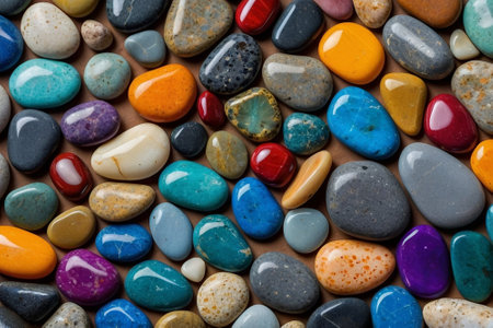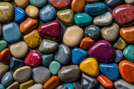 A diverse and vivid assortment of smooth, colorful pebbles ideal for backgrounds or artistic creations