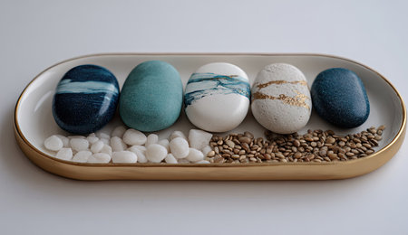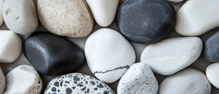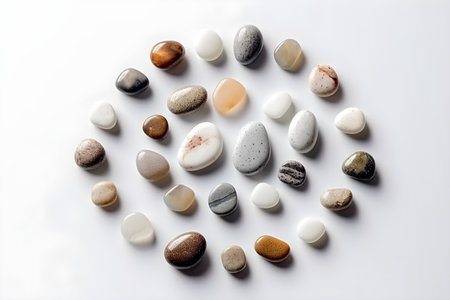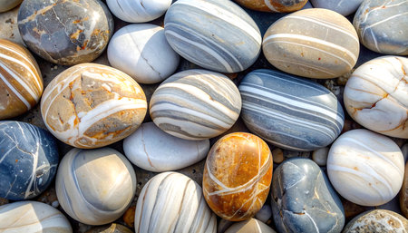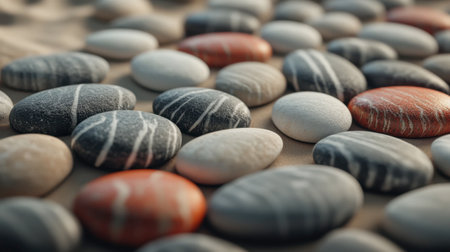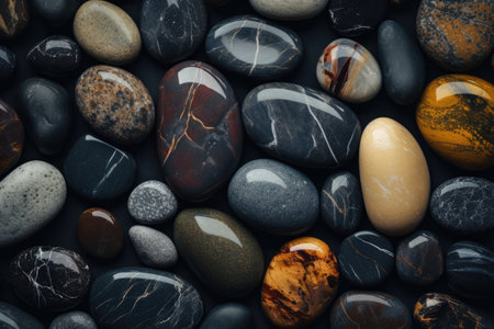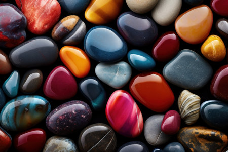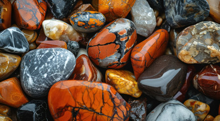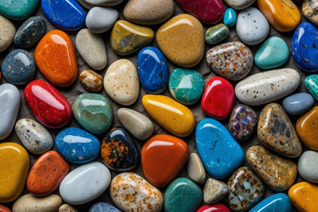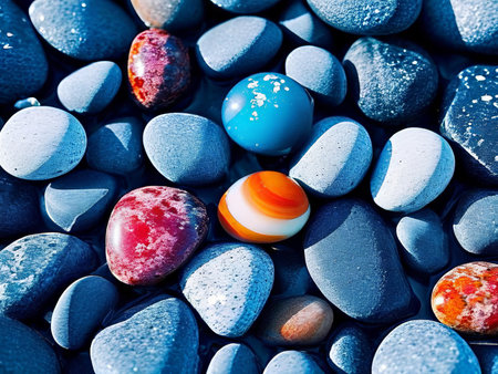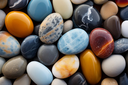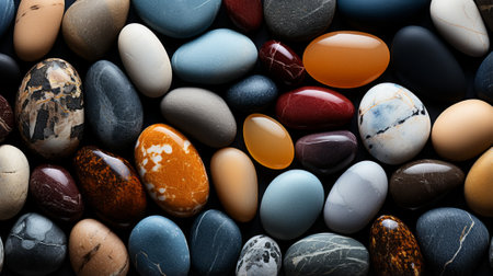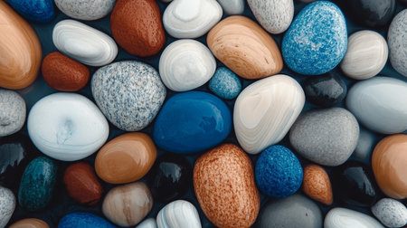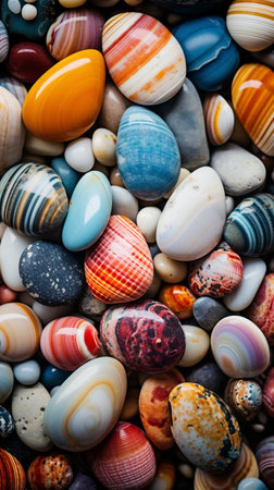 A captivating collection of smooth decorative stones showcases an array of natural colors and textures. Perfect for backgrounds or design themes.