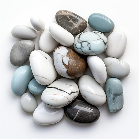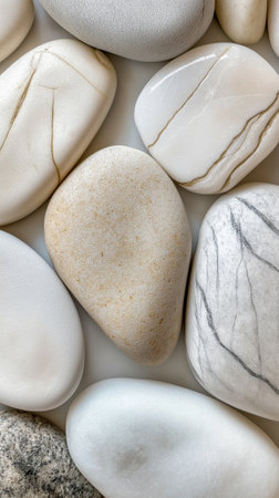 Top View of Smooth Marble Stones, Minimalist Background, Detailed Structure, Pastel Colors