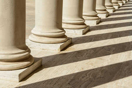 Columns of marble on a building pavilion showing architecture design and decorative structure with light and shadows