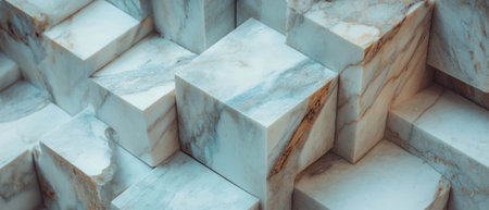 Marble blocks in various colors and patterns, arranged in a neat stack on a smooth surface. No people, copy space