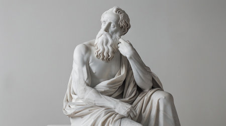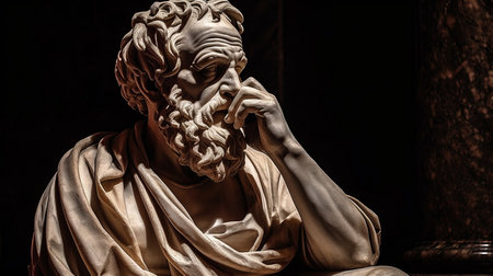 A marble statue of a philosopher of antiquity. A thoughtful thinker. AI generated.