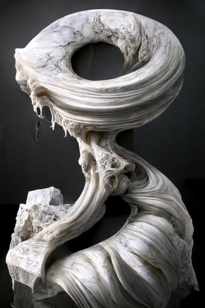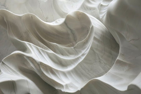 Detailed close-up of a white marble sculpture showing gentle wrinkles and folds in the material, Gentle wrinkles and folds creating a sense of organic movement