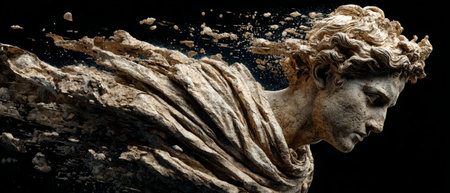 Shattered Ancient Statue Exploding into Fragments .Generative AI