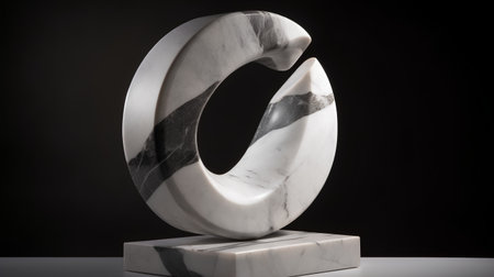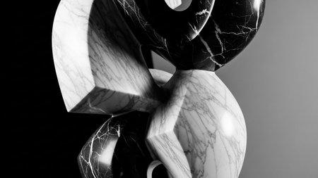 Abstract showing abstract sculpture of black and white marble with interlocking forms and dramatic lighting...
