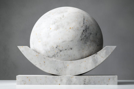 White marble ball on a gray background.