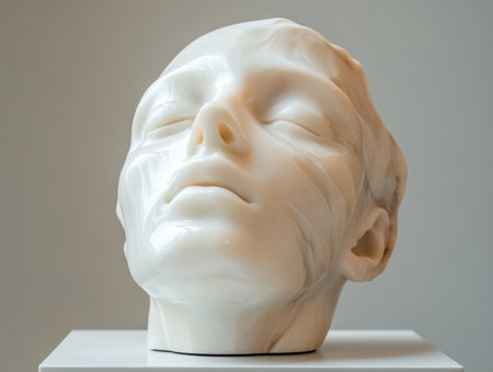Serene Marble Head Sculpture: Contemporary Art Piece on Display in Modern Gallery.