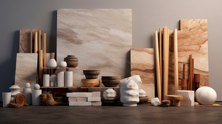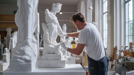 Sculpture bust and tools in an art workshop background