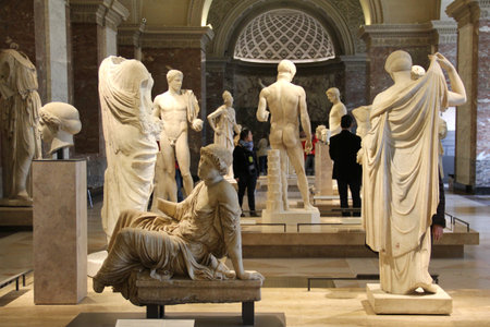 Paris, France - Mar 15, 2015: Works of art inside the Louvre Museum, the most important in France and one of the most visited in the world