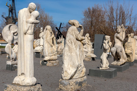 Russia, Moscow 05.04,2019 Sculpture Park Museon, Many white sculptures under the open sky
