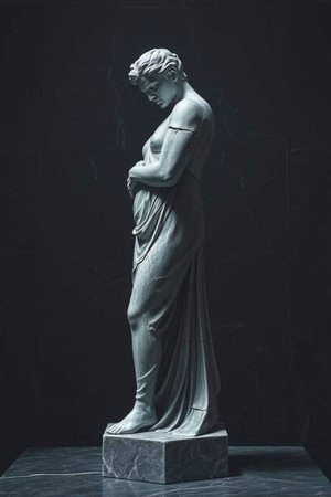 Statue of an ancient Greek woman on a black background. Toned.