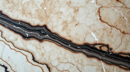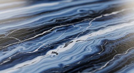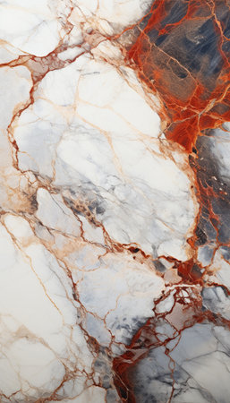 Marble surface with intricate patterns and textures. The image showcases a detailed view of a marble surface, highlighting its natural texture The stone's unique veining create a stunning macro visual