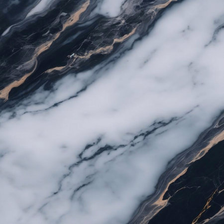 A top view of a seamless marble floor with dramatic veining patterns in white and grey.