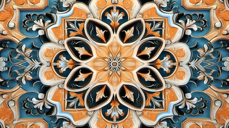 Colorful digital art, Oriental pattern, geometric texture, Mystical motif, Abstract background, Fantastic design.