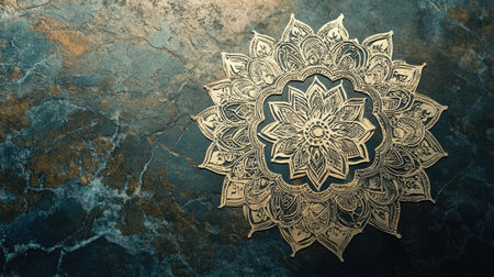 A detailed mandala design showcased on a stunning blue marble background, blending beauty and craftsmanship for an elegant aesthetic appeal.