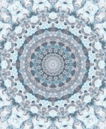 Subtle and Elegant Mandala Pattern in Soft Blues and Grays with Metallic Accents