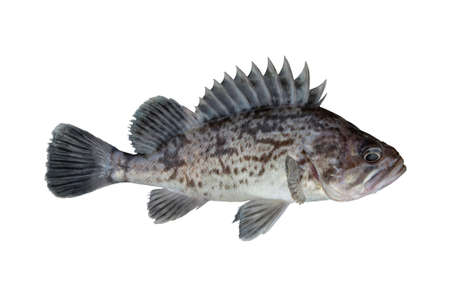 Chinese mebaru rock fishing. Sea dark perch fish isolated on white background