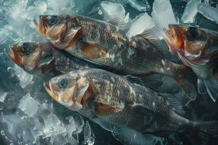 A fresh Antarctic fish haul in icy waters, reflecting marine wildlife and polar fishing.