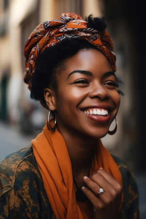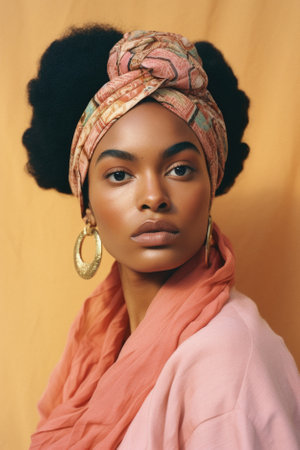 Beautiful African American woman with afro hairstyle and headscarf