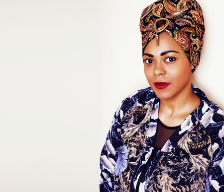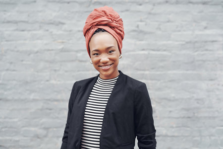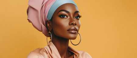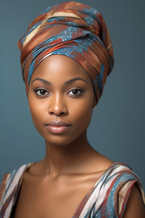 Graceful portrait of stylish African American woman in amazing African turban