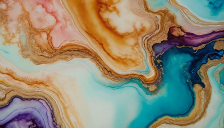 Colorful abstract painted background. Marbling artwork texture. Agate ripple pattern. Gold powder.