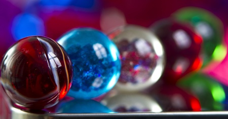 Colorful glass balls on a dark background. Shallow depth of field.
