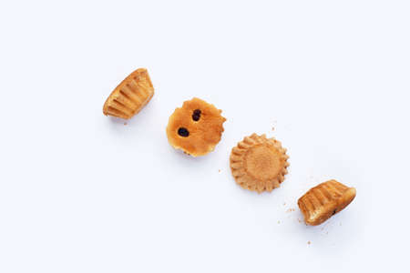 Mini castella cake on white background.