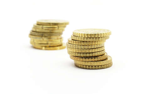 Stacks of coins on a white background. Business and finance concept.