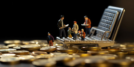 Miniature people. Climbers are climbing coins. Success business concept. business concept. Generative AI