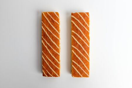 Coffee biscuits on a white background. Close-up.