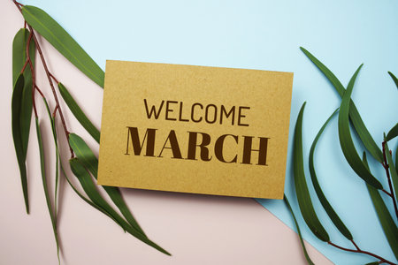 the text March delicately intertwined with a floral wreath, set against a light background, evoking the freshness and beauty of spring, perfect for seasonal greetings or calendar designs