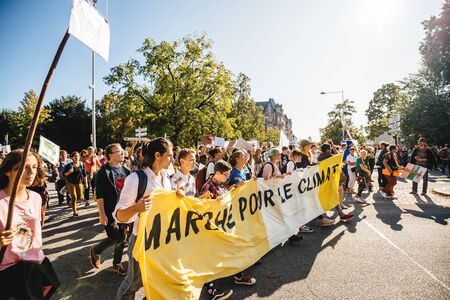 Strasbourg, France - Sep 21, 2019: Placard Marche pour le Climat in people hands during what could be the largest worldwide climate march change started by Swedish climate activist Greta Thunberg