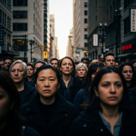 crowd of people on a city street, realistic illustration